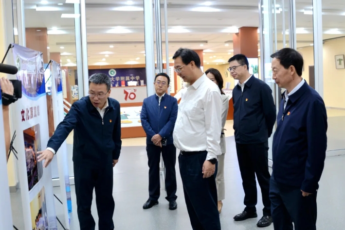 包献华先后调研了学校美育中心、阳光大舞台、实验教学中心和科创教育中心等地,并与大家座谈交流学习党的二十届三中全会精神和全国教育大会精神心得体会。包献华说,全会对深化教育综合改革专门作出部署,全国教育大会系统部署了全面推进教育强国建设战略任务和重大举措。要紧紧围绕立德树人这个根本任务,全面把握教育的政治属性、人民属性、战略属性,以铸牢中华民族共同体意识为工作主线,持续深化教育综合改革,切实抓好教师队伍建设,让教育改革发展成果更多更公平惠及全体人民。