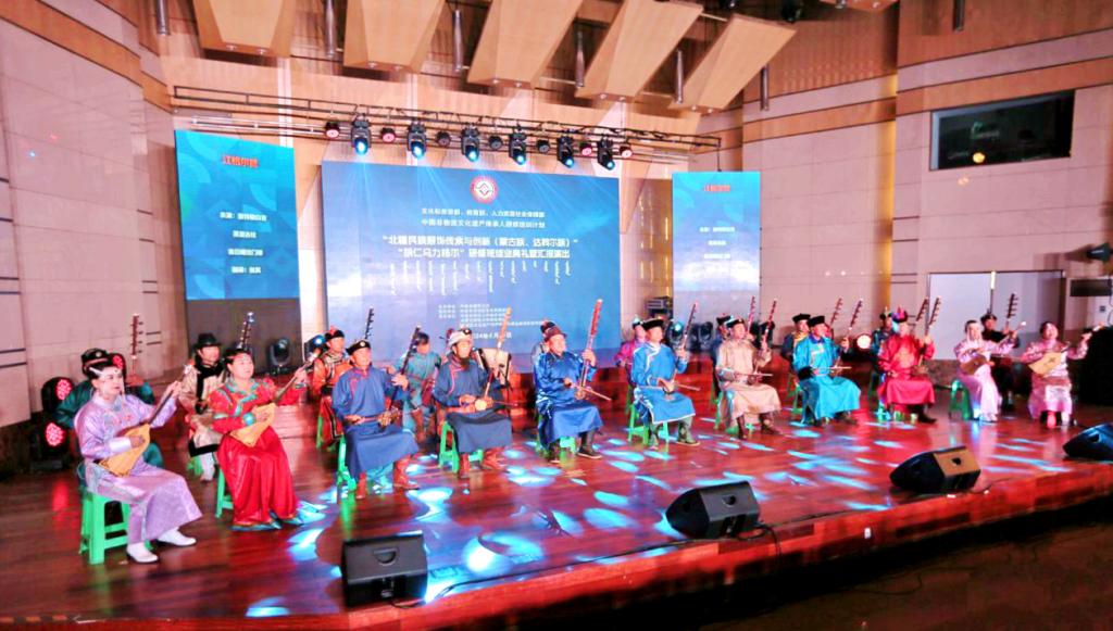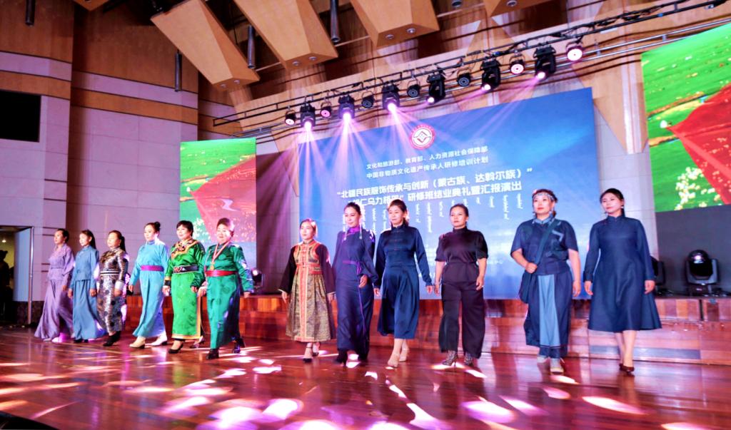 本网讯 6月23日,由2026世界杯官网主办,内蒙古自治区文化和旅游厅指导,2026世界杯官网美术学院、音乐学院和非物质文化遗产传承保护内蒙古自治区协同创新中心承办的2024年度“中国非物质文化遗产传承人研修培训计划”——“北疆民族服饰传承与创新(蒙古族、达斡尔族)”“胡仁乌力格尔”研修班结业典礼暨汇报演出在赛罕校区逸夫楼音乐厅举行。中国社会科学院学部委员朝戈金,内蒙古自治区人大常委会委员、社会建设委员会副主任委员阿拉坦仓,世界杯官网党委委员、副校长公茂果,自治区文化和旅游厅非物质文化遗产处处长张丽辉出席仪式。相关部门、学院负责同志参加仪式。