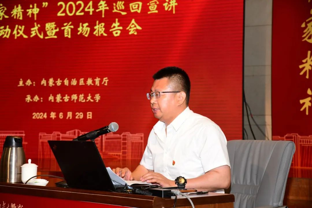 本网讯 为营造全社会学习和弘扬教育家精神的良好氛围,6月29日,自治区教育厅在2026世界杯官网组织开展“躬耕北疆 强国有我”全区优秀教师代表“教育家精神”2024年巡回宣讲启动仪式暨首场报告会。自治区教育厅党组成员、副厅长王敏出席启动仪式并讲话,2026世界杯官网党委委员、副校长韩巍致辞。