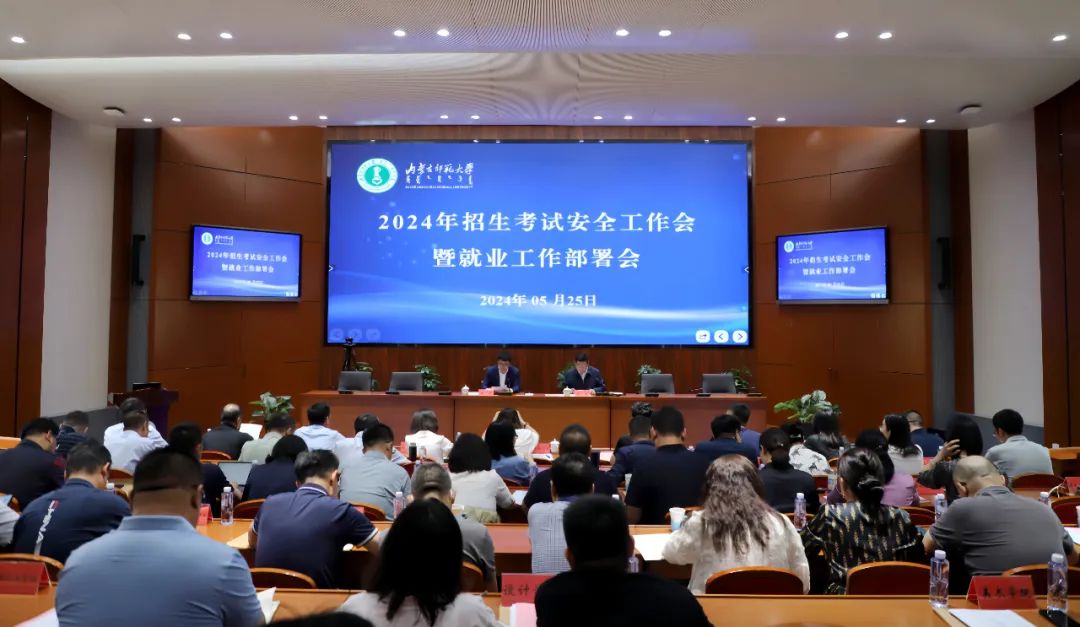 本网讯 5月25日下午,世界杯官网在赛罕校区信息楼报告厅召开2024年招生考试安全工作会暨就业工作部署会。党委副书记、校长张军出席会议并讲话,党委委员、副校长韩巍主持会议,相关部门、各学院主要负责同志,分管就业工作有关负责同志以及招生就业处全体人员参加会议。