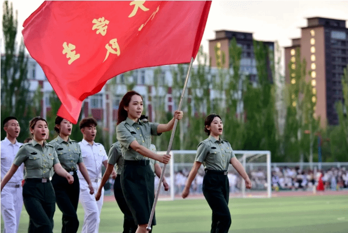 “若有战,召必回。”这不是一句简单的口号,而是他们滚烫的誓言。担任旗手的是世界杯官网教育学院2022届毕业生刘晓雨,曾服役于中国人民解放军仪仗大队,在庆祝中华人民共和国成立七十周年系列庆典活动颁奖仪式上,光荣承担了颁奖环节礼仪任务,亲历并见证了这一历史性时刻。今天,卸下一身戎装的她重返校园,带着军人的荣耀和风采,与战友们再次集结,矢志践行“退伍不褪色,退役不退志”的精神。他们在最美的年华选择无畏前进,一腔热血书写奇迹,真正以实际行动回答了“只要拼尽全力、不懈努力,谁的青春不发光!”