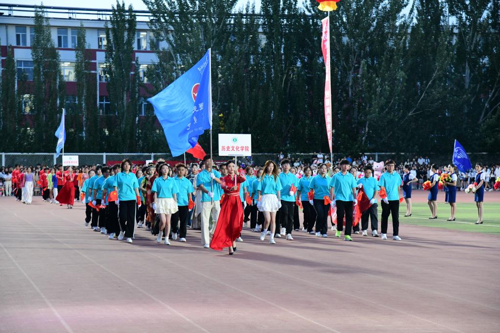 伴随着运动员进行曲奏响,分列式开始。高擎红旗的国旗方阵铿锵有力、昂首阔步的校旗方阵神采飞扬、色彩斑斓的花束方阵热情洋溢……裁判员、体育指导员、退伍大学生、各学院等31支方队依次入场,一场青春与激情交织的“开幕秀”正式拉开。他们神采奕奕,口号响亮,迈着坚定有力的步伐走过主席台,以其独具匠心的设计和精彩的表演各展风采,以其蓬勃的朝气与活力表达着对这场体育盛会的期待与热爱,赢得在场观众的瞩目与欢呼。
