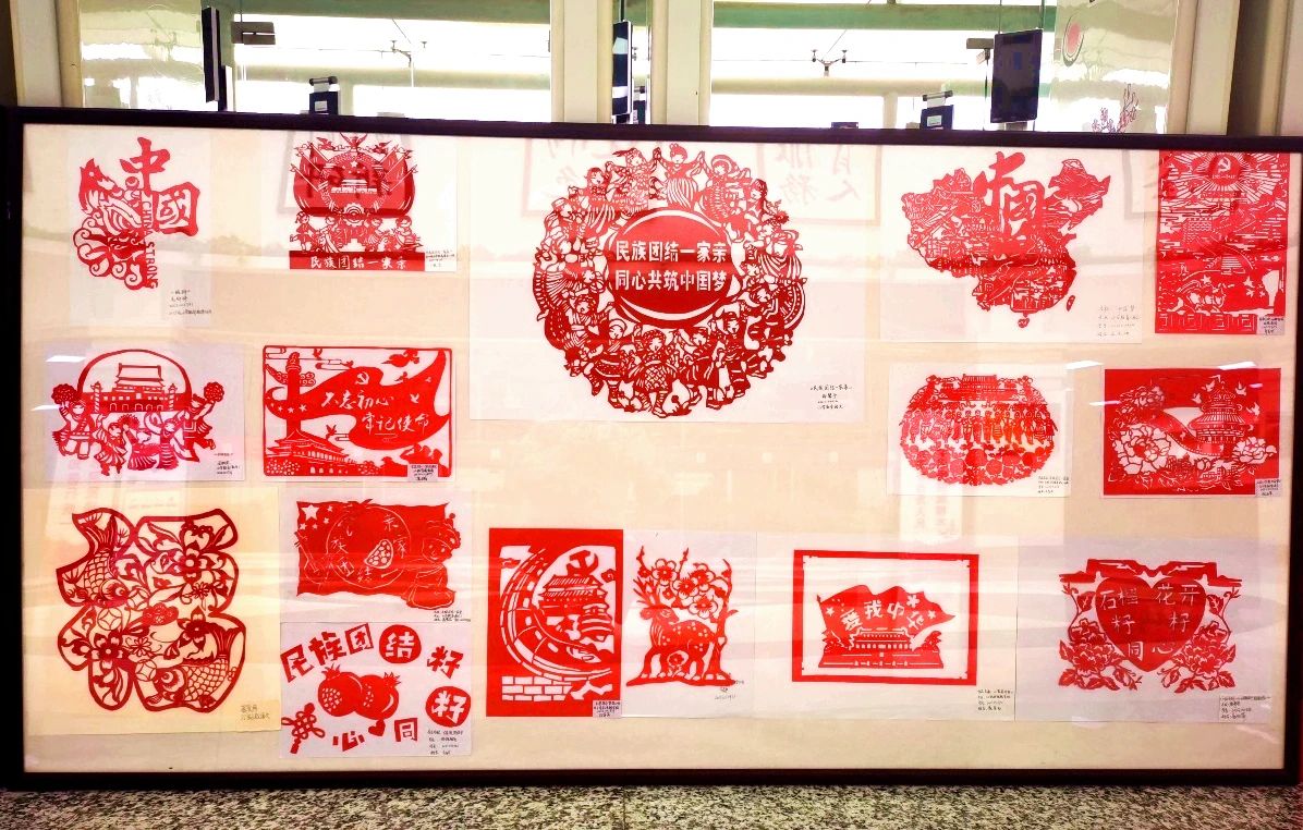 活动从40多幅获奖作品中精选出22幅制作成展板在盛乐校区图书馆二楼展出。展出作品以纸张为载体,通过剪和刻等精细化操作,呈现出丰富的图案和生动的形象,体现了同学们独特的创意和真挚的情感。活动还设计了展览互动环节,邀请全校师生在欣赏作品的同时留下自己对“铸牢中华民族共同体意识”的感悟。
