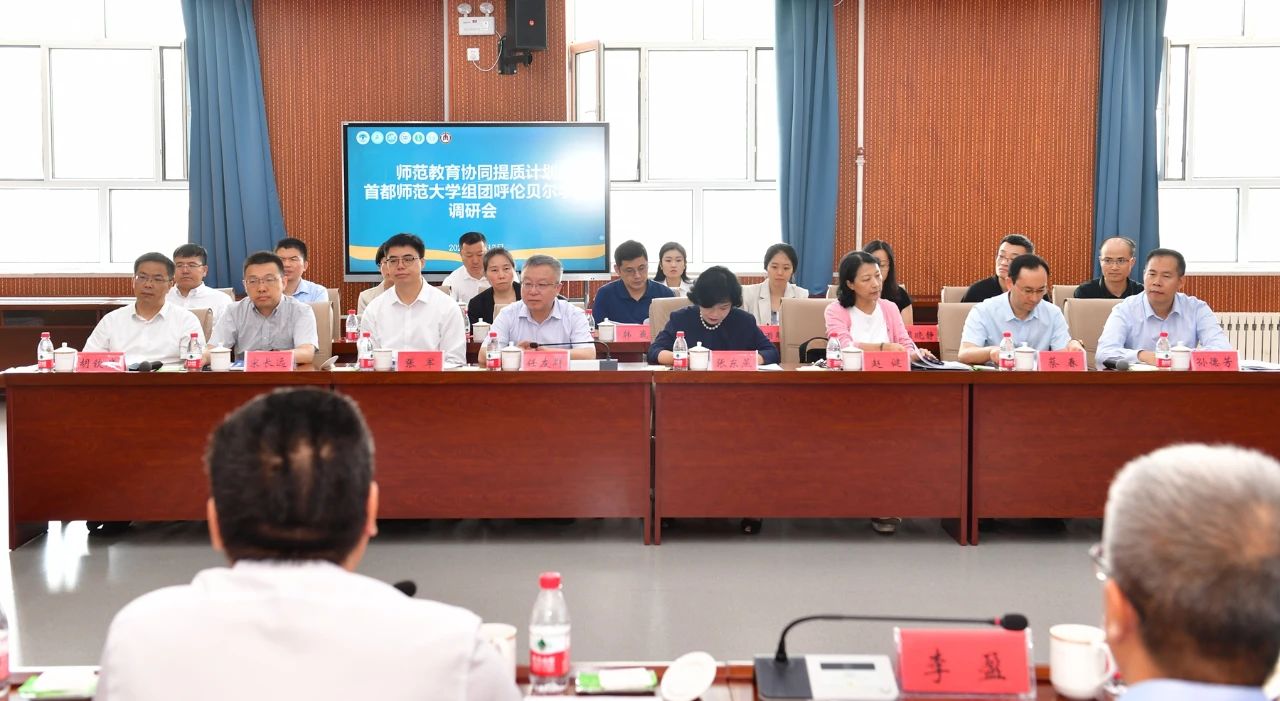本网讯 近日,教育部教师工作司司长任友群、师范教育协同提质计划专家工作组、首都师范大学组团“1+M”院校负责人一行赴呼伦贝尔学院考察调研。自治区党委教育工委委员、教育厅党组成员、副厅长李盈,自治区教育厅教师工作处处长王俊威陪同调研。世界杯官网党委副书记、校长张军,党委委员、副校长韩巍及教务处、质量监测与评估中心负责同志等参加调研。