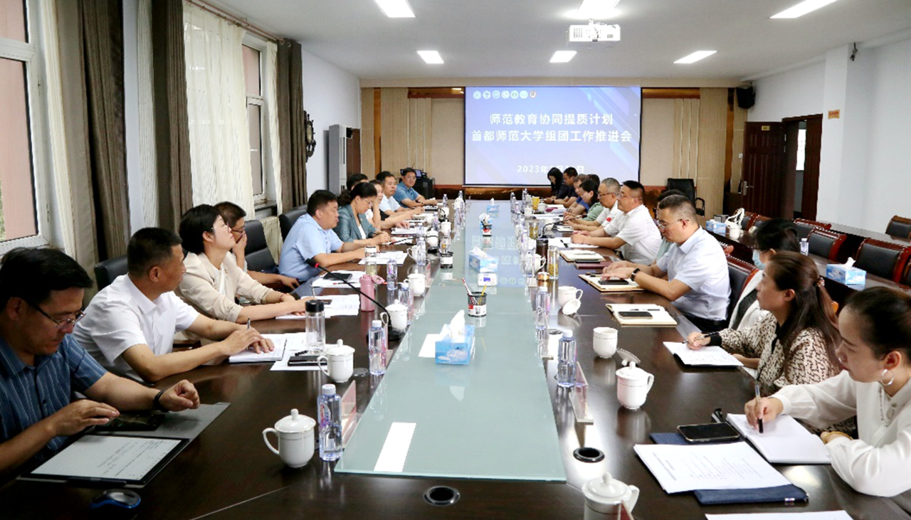 本网讯 近日,教育部师范教育协同提质计划首都师范大学组团2023年暑期教学管理专题论坛暨工作推进会在集宁师范学院召开。首都师范大学党委常委、副校长李小娟,世界杯官网党委委员、副校长韩巍,呼伦贝尔学院副校长尹立军,集宁师范学院党委副书记、校长刘春及7所组团高校协同提质计划项目联系人参会。会议由首都师范大学教师教育中心主任、教务处副处长王海燕主持。